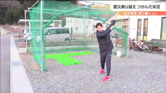 「素振り」と「壁当て」。洞口さんは、今できることを続け震災のハンディを克服しました。