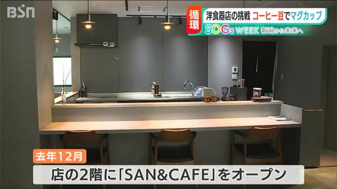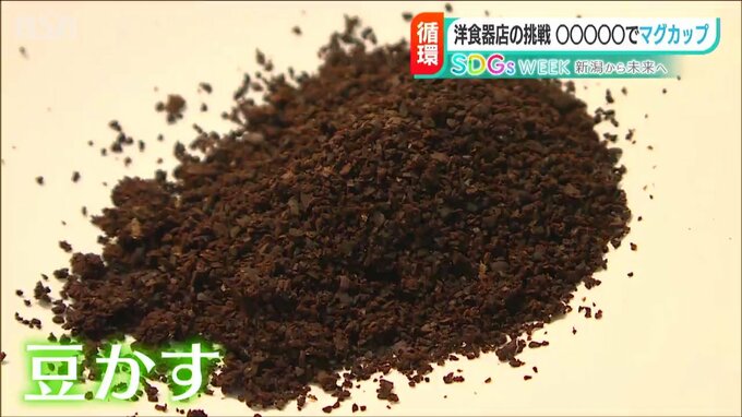 【記者リポート】「コーヒーが入ったこのマグカップ。実は、本来廃棄される“豆かす”が使われているんです」