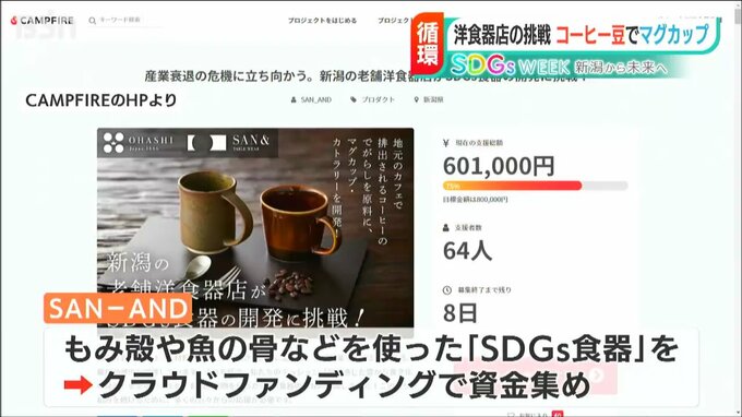 今後は、もみ殻や魚の骨、貝殻などを使った皿の製作を目指すとしていて、こうした取り組みを応援してもらうために“クラウドファンディング”で資金集めに挑戦しています。期間は2月末までで、既に75%を達成しています。