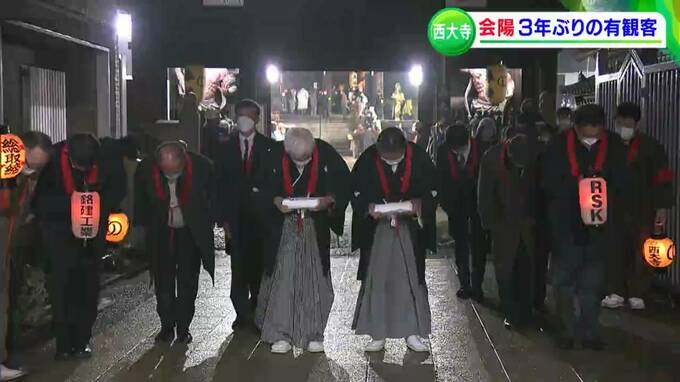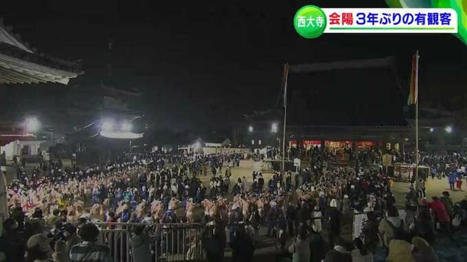 おととい行われた西大寺会陽です。3年ぶりとなる、観客を入れての開催。待ちわびた約2万人を前に、マスク姿の裸衆が姿を現しました。