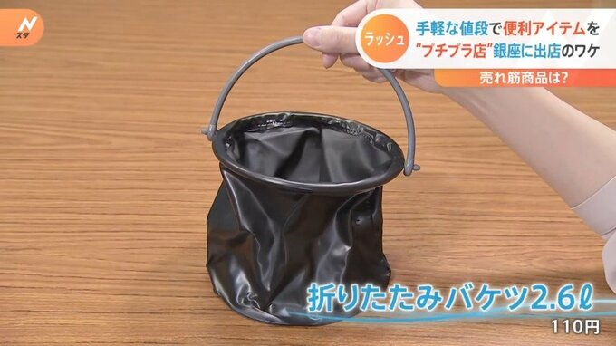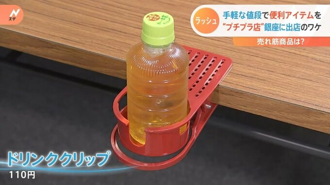 このほか、アウトドアにおススメな机にとりつける「ドリンククリップ」(110円)や「折りたたみバケツ2.6リットル」(110円)も大人気のプチプラ商品。実は今、コロナ禍で銀座に空き店舗が増え、そこに続々と“プチプラ店”が進出しているんです。