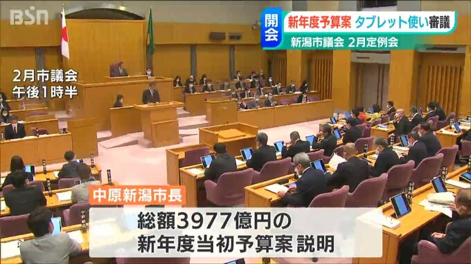 2月新潟市議会の初日には、中原八一市長が総額3977億円の「新年度当初予算案」について議会に説明しました。