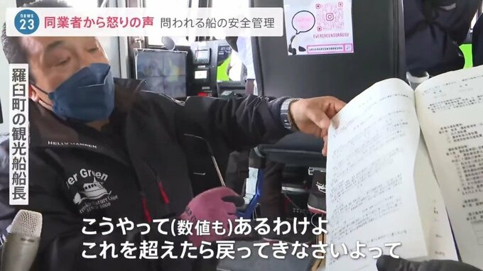 「こうやって(数値も)あるわけよ。これ超えたら戻ってきなさいよって。これだったら出航を控えなさいとか、(事故が起きた)ウトロも当然あったし、全国の旅客船と名の付くものは、みんな」