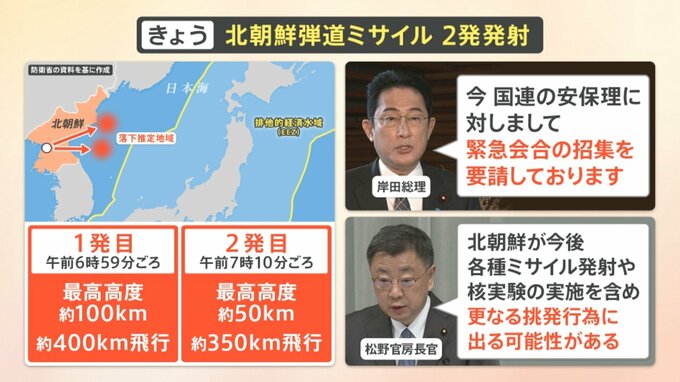 20日、北朝鮮が弾道ミサイル2発を発射しました。