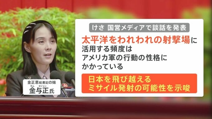 金与正氏「太平洋をわれわれの射撃場に…」 日本上空をミサイルが…?