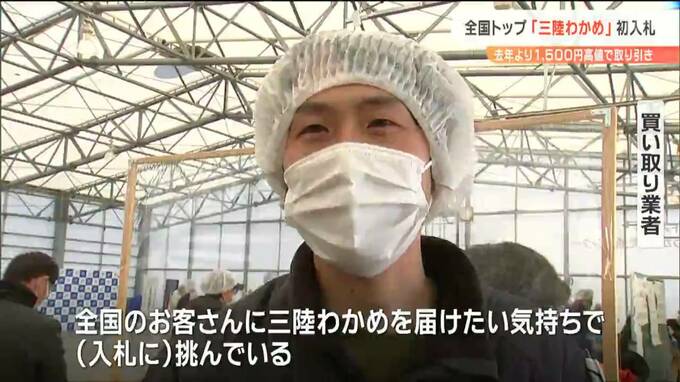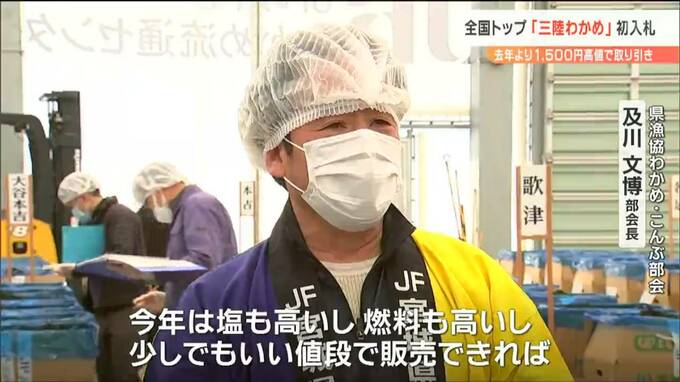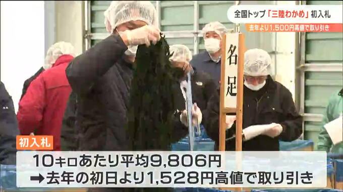 「三陸わかめ」で知られる養殖ワカメの初入札が21日、全国のトップを切って宮城県気仙沼市で行われました。去年の初入札よりも1500円余り高値で取り引きされました。