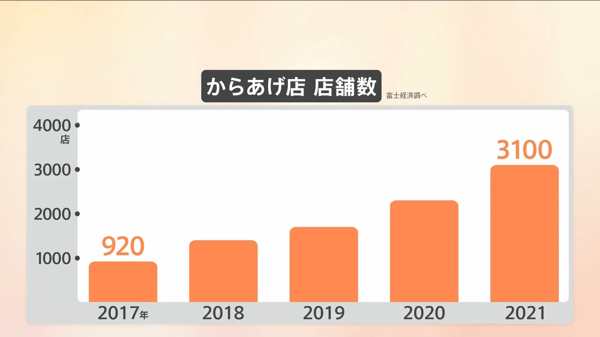 2017年、920店舗だった「からあげ店」は21年には3100店舗まで増加しました。ところが、店舗数を調べた会社によると…