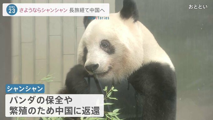 東京・上野動物園のジャイアントパンダ「シャンシャン」が、返還先の中国に到着しました。夕方、四川省成都の空港に到着したシャンシャン。移送用のケージの中で、動きまわる様子が確認できます。パンダの保全や繁…