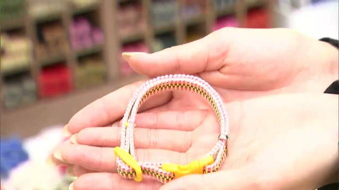 (杉澤眞優キャスター)「こちらでは、真田紐を使ってオリジナルのネコ用の首輪を作ることができます。こちらは実際にさんじゅーろーに献上したデザインです」