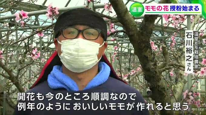 (温室桃の栽培農家 石川裕之さん)「開花も今のところ順調に進んでいますので、例年のようにおいしい桃が作れると思います」