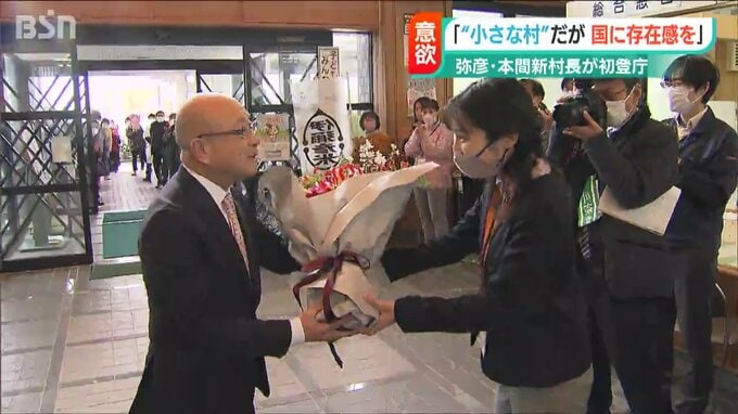 任期満了に伴う弥彦村長選で初当選した本間芳之新村長が22日、初登庁し、「子育て支援、高齢者支援に力を入れたい」と村政運営への意欲を語りました。22日、弥彦村役場に初登庁した本間芳之新村長。 職員らに迎え…