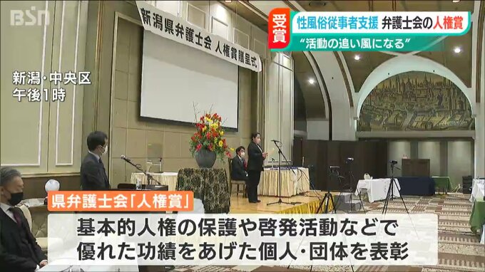 性風俗業界で働く女性の相談や支援を行う新潟市のNPO法人『風(ふう)テラス』が新潟県弁護士会の「人権賞」を受賞しました。