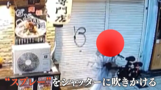 スプレーでシャッターに落書きする2人組。大阪市内の商店街に設置された防犯カメラがその一部始終を捉えていました。シャッターに書かれた「B」にみえるものとは。