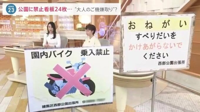 夜間の利用や園内のバイクについてなど大人向けの看板もありました。役所は近隣の人との調和を必要としていますが、こうして看板を立てることで「対応しましたよ」とポーズすることが目的化しているのではないかと感じてしまいます。