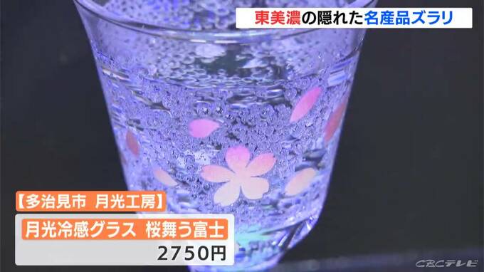 会場には、17℃以下の飲み物を注ぐと桜が徐々にピンク色に色付くグラスや、東濃(とうのう)ヒノキを使用した、世界で唯一の五本指下駄などおよそ500点が集結。