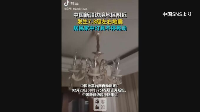 中国メディアによりますと、23日朝、タジキスタンでマグニチュード7.2の地震が発生し、中国の新疆ウイグル自治区でも強い揺れが確認されたということです。こちらは、中国のSNSに投稿された新疆ウイグル自治区で23…