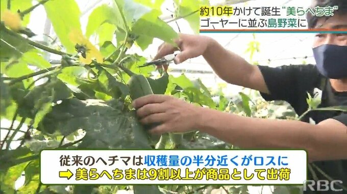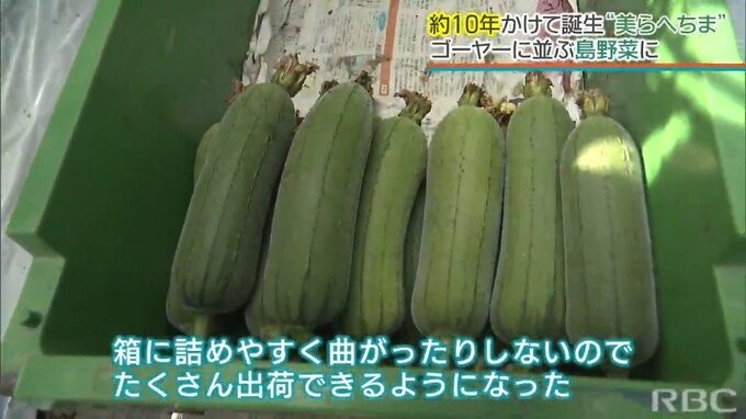 従来のヘチマは形や大きさにバラつきがあることからこれまで収穫量の半分近くがロスとなっていましたが、『美らへちま』に変えたことで全体の9割以上を出荷できるようになったと言います。