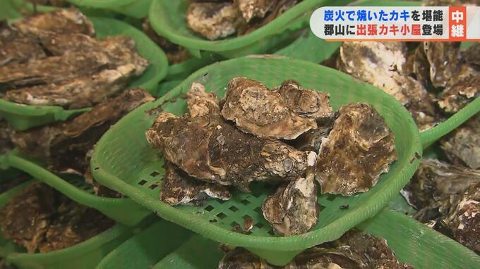 こちらのテントの中では、23日から「カキ」を炭火で存分に味わえる「出張カキ小屋牡蠣奉行」というイベントが始まりました。