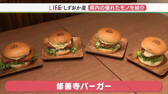 静岡県伊豆市の「あまご茶屋」、生産者直営のお店です。<店員>「お待たせしました」<客>「すごい!大きいね。『修善寺バーガー』ネーミングもいいですね」今回のしずおか産は、温泉マークの焼き印が目をひく「…