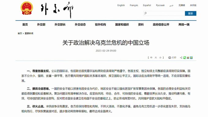ロシアによるウクライナ侵攻開始から1年となった24日、中国政府は早期の停戦を呼びかける文書を発表しました。ロシアのウクライナ侵攻から1年に合わせ、中国政府は「ウクライナ問題の政治的解決に関する中国の立場…