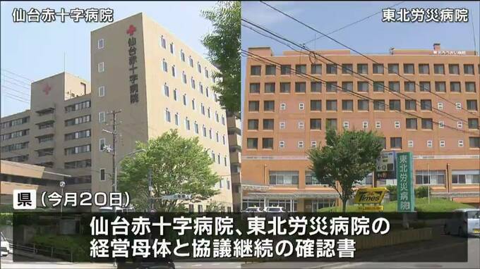 県の構想は、仙台赤十字病院と県立がんセンターを統合して名取市に、東北労災病院と県立精神医療センターを併設して富谷市に移転するもので、2月20日に県は、仙台赤十字病院、東北労災病院の経営母体と協議を継続する確認書を取り交わしています。