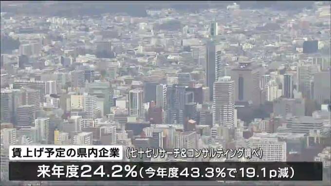 宮城県内の企業のうち、来年度=2023年度に賃上げを予定する企業は今年度から半減の24.2%にとどまっています。仙台市の七十七リサーチ&コンサルティングが去年12月から今年1月にかけて実施した調査の結果、来年度…