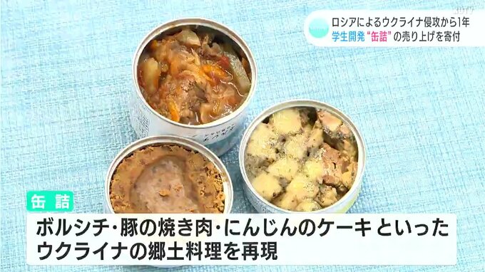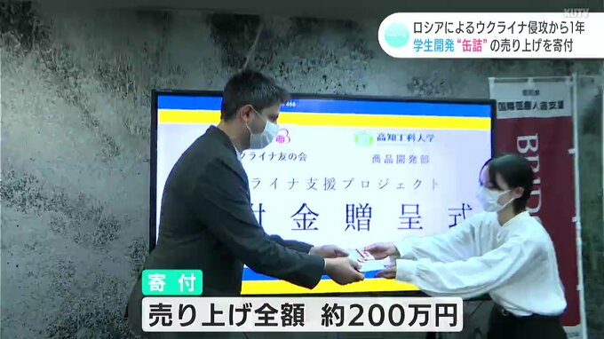 ロシアのウクライナ侵攻から24日で1年になります。高知工科大学の学生たちが製作・販売した缶詰の売り上げ金が、23日、高知県内でウクライナを支援する団体に寄付されました。