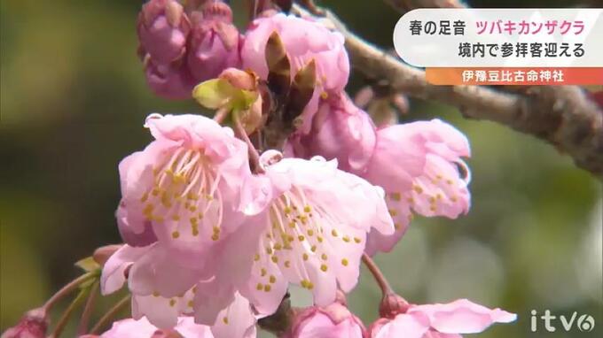 少しずつ春の足音が近づく中、愛媛県松山市の伊豫豆比古命神社ではツバキカンザクラが開花し、訪れた参拝客を楽しませています。山田祐也アナウンサー「曇天の松山市内、きょうのすっきりとしない天気を晴らす…