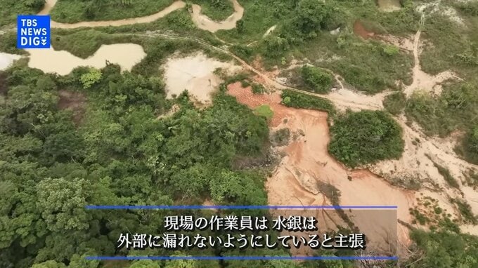 作業員によれば、かつて、この場所に水銀を大量に撒いたことから、今は水銀を使わなくても金の採取が可能で、付着した水銀を熱し蒸発させると金を抽出できるという。その水銀は大気中に出ない仕組みにしていると説明した。ただ装置などは現場で見当たらず、「環境を汚染していない」という確たる裏付けを確認することはできなかった。