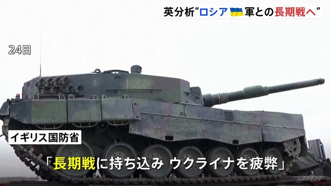 侵攻から1年の戦況についてイギリス国防省は、ロシアが「ウクライナ軍の戦力低下」に主眼を置き、「長期戦にもちこむ作戦に変えた」との分析を発表しました。イギリス国防省は24日、ロシアはウクライナ全土を掌握…