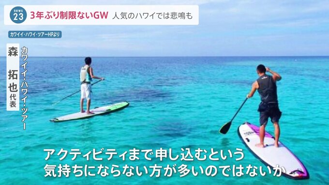 3年ぶりに行動制限のないゴールデンウイークが始まりました。初日は全国的にあいにくの雨となりましたが、国内の観光地は賑わいが戻っています。海外旅行に出かけるという観光客も増え、ハワイに向かう便の予約は…