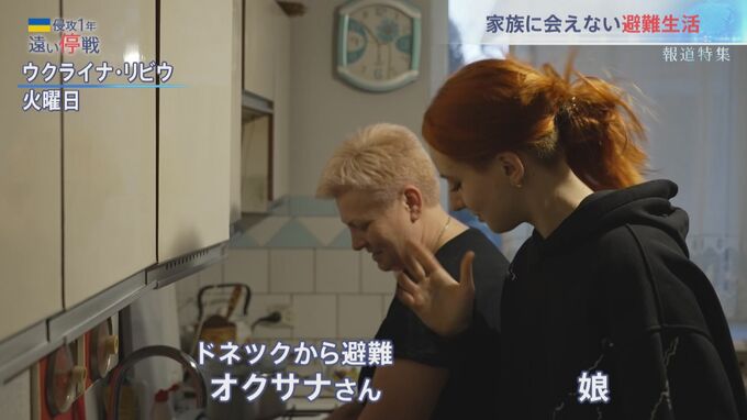 ドネツク州から夫と娘とともにリビウに避難してきたオクサナさん。現在、一軒家を複数の家族で借りて、生活していた。