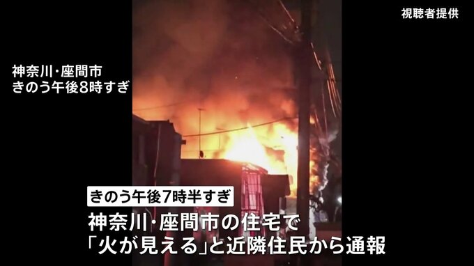 26日夜、神奈川県座間市で住宅が全焼する火事があり、焼け跡から2人の遺体が見つかりました。警察はこの家に住む70代の夫婦とみて調べています。26日午後7時半すぎ、座間市四ツ谷の住宅で「火が見える」と通報があ…