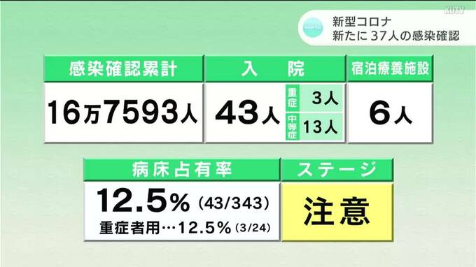 新型コロナについて、県内で新たに37人の感染が確認されました。1日の感染確認が40人を下回るのは、去年の1月以来です。