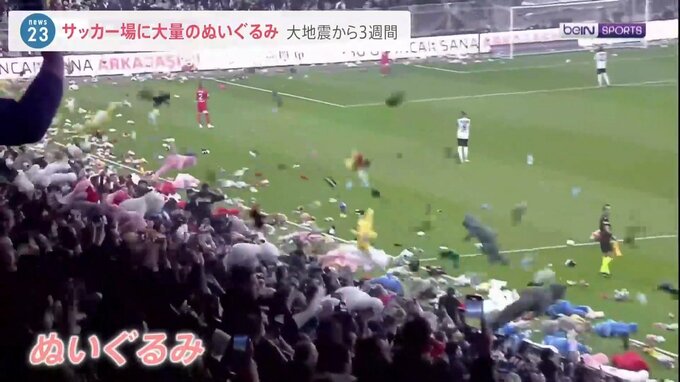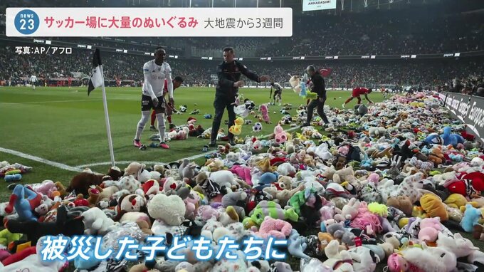 大地震から3週間 サッカー場への大量のぬいぐるみは被災した子どもに