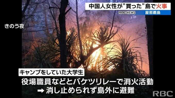 中国人女性が「買った」とSNSに投稿した伊是名村(いぜなそん)の無人島「屋那覇島(やなはじま)」できのう(27日)、雑木林が燃える火事がありました。