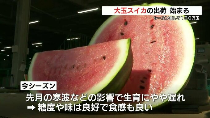 熊本県内各地で氷点下まで冷え込んだ2月28日、植木地域では早くも大玉スイカの出荷が始まりました。JA鹿本の選果場では農家が丹精込めて育てたスイカが次々と運び込まれ、初出荷を迎えました。全国有数の生産量を…