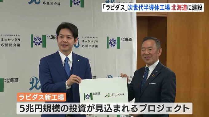 国産による次世代半導体の製造を目指す新会社「ラピダス」が北海道千歳市に工場を建設すると発表しました。「ラピダス」の小池淳義社長はきょう、北海道庁を訪れ、鈴木知事に千歳での工場建設を報告しました。ラピ…