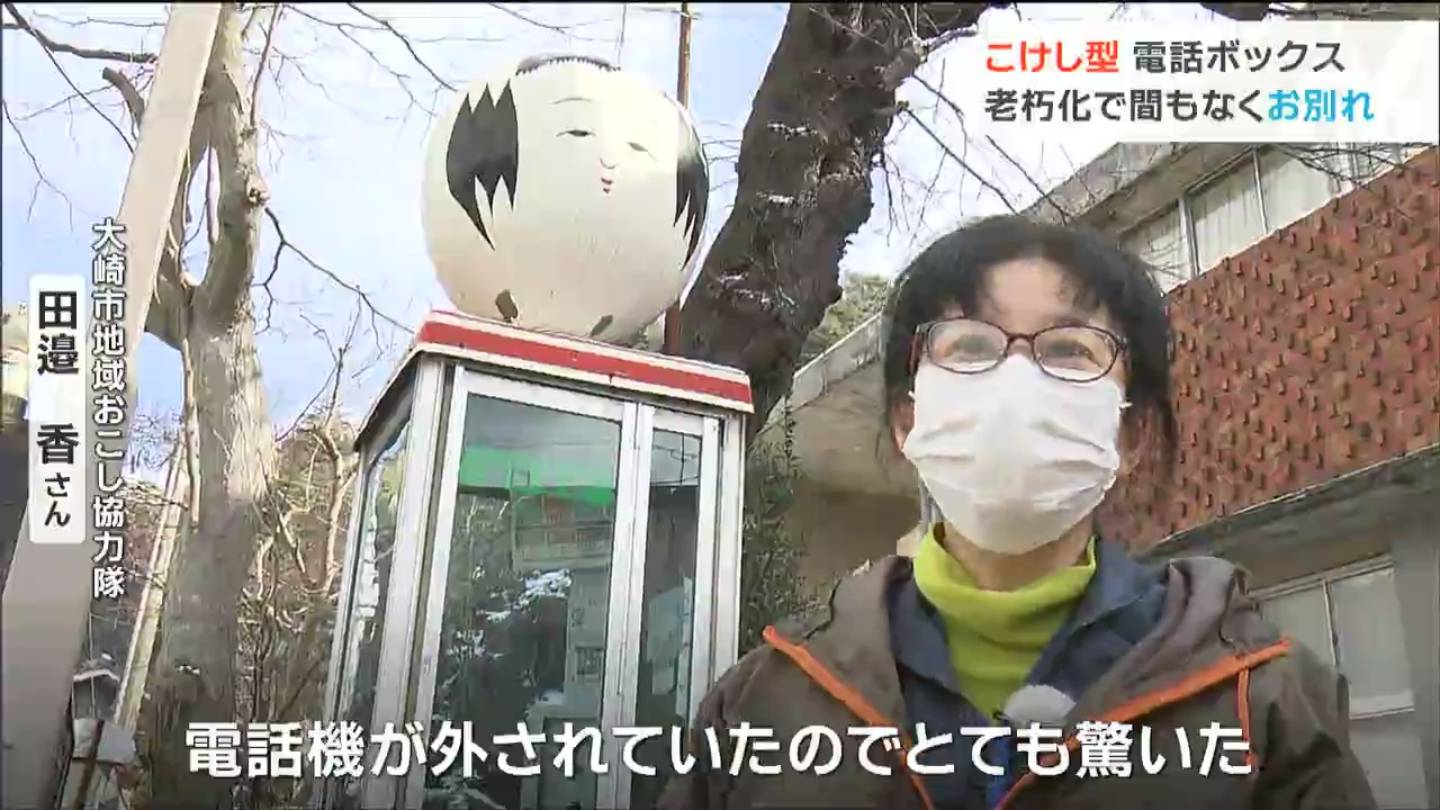 宮城県大崎市鳴子温泉と言えば、温泉はもちろんのこと、伝統こけしの郷としても知られています。その鳴子温泉で28日、こけしの頭が載った電話ボックスが撤去されました。こけしの頭の部分は市が引き取り、観光協会などと活用策について検討することにしています。