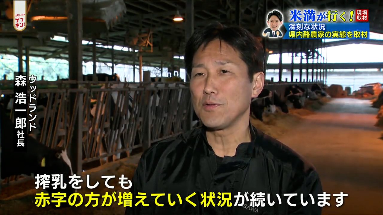 森 社長「私が酪農を始めて今までなかった状況ですね。搾乳をしても赤字の方が増えていく状況が続いています」