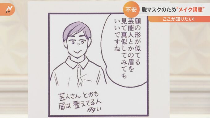 男性は眉毛で悩んでいる方という方多いということで、「顔の形が似てる芸能人とかの眉を見て真似してみてもいいですね」「芸人さんとかも眉は整えてる人多い」とのことです。