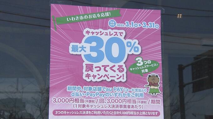 キャッシュレス決済で、最大9千円分のポイント還元、誰でも使えるキャンペーンが福島県いわき市で始まりました。いわき市の飲食店や小売店などで3月1日から始まった最大9千円分のポイントが還元されるキャンペーン…