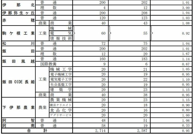 3. 【長野県公立高校入試】後期選抜「志願者数」「倍率」最終【高校一覧】