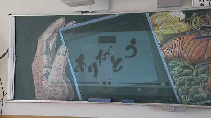マスクをした高校生が、荒波に船をこぎ出す作品は、去年実施された「黒板アート甲子園」で八幡中央高校の生徒が描いた作品です。新入生を応援しようと描いたこの作品は、優秀賞を受賞しました。黒板アートに並々ならぬ思いを持つ八幡中央高校の卒業生たち。保護者も集まる卒業式の当日に3年間の感謝の思いを伝えようと企画しました。