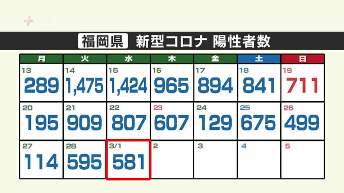 新型コロナの情報です。福岡県では1日、新たに581人の陽性と5人の死亡が確認されました。先週の水曜日に比べて陽性者は220人減り、減少傾向が続いています。県内では70代以上の男女5人の死亡が確認…