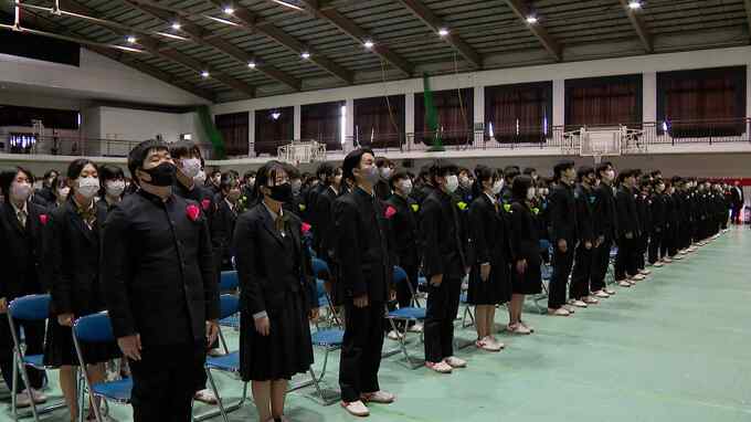 福岡市早良区の福岡工業高校では、約360人の卒業生のほとんどがマスクを外して卒業式に臨みました。