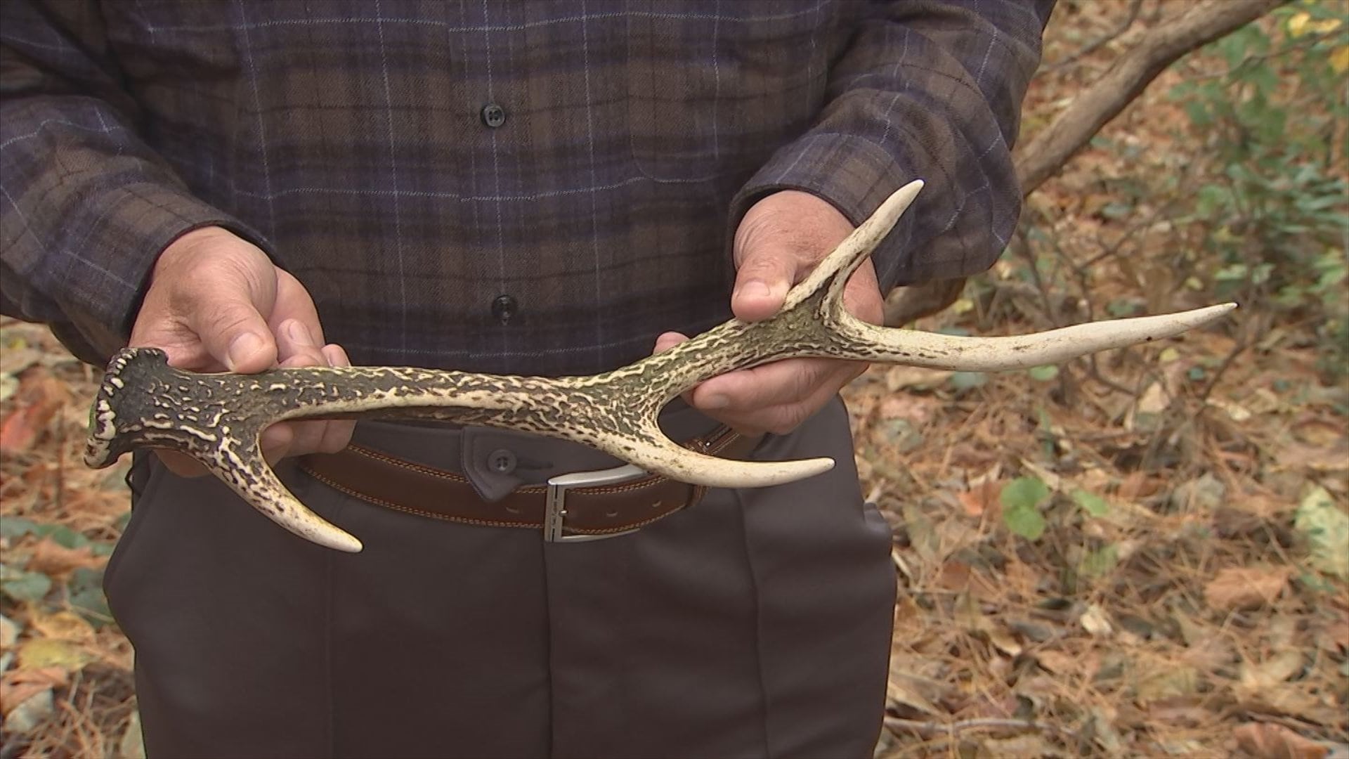 「これ、おととい拾った雄ジカの角です。ついこの近くで拾ったんですけど、こういう角が落ちているということは、相当数のシカがこのあたりに住んでいて、生息している可能性が非常に高いです」