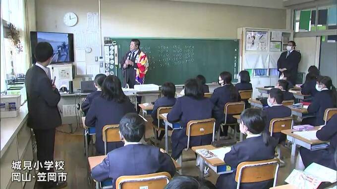 笠岡市立城見小学校では、5年生の教室で特別授業が行われ、地元の海で鯛やハマチなどがとれるといった話を聞きました。そして、そのあとの給食では岡山県と笠岡市漁協から、卒業シーズン前恒例の「お祝い献立用に」とマダイが提供されました。