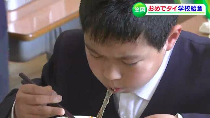 市内の幼稚園から中学校まで、赤飯などとともに鯛の塩焼きがふるまわれました。