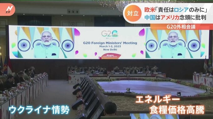 インドでG20=主要20か国の外相会議が行われています。ウクライナ情勢が主な議題で、欧米とロシア・中国が対立する中、激しい議論となっているもようです。記者「会場には多くのメディアが集まっていて、各国の外相…